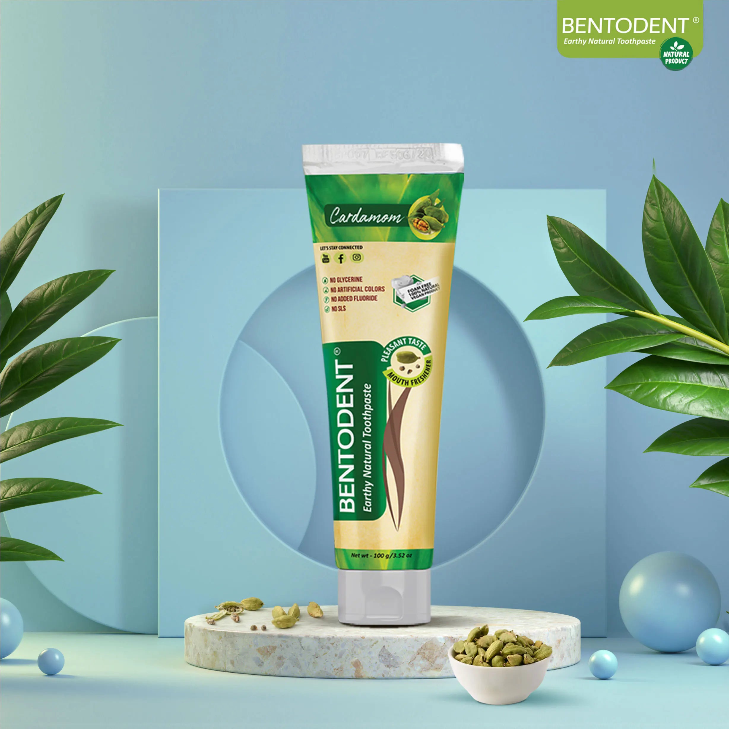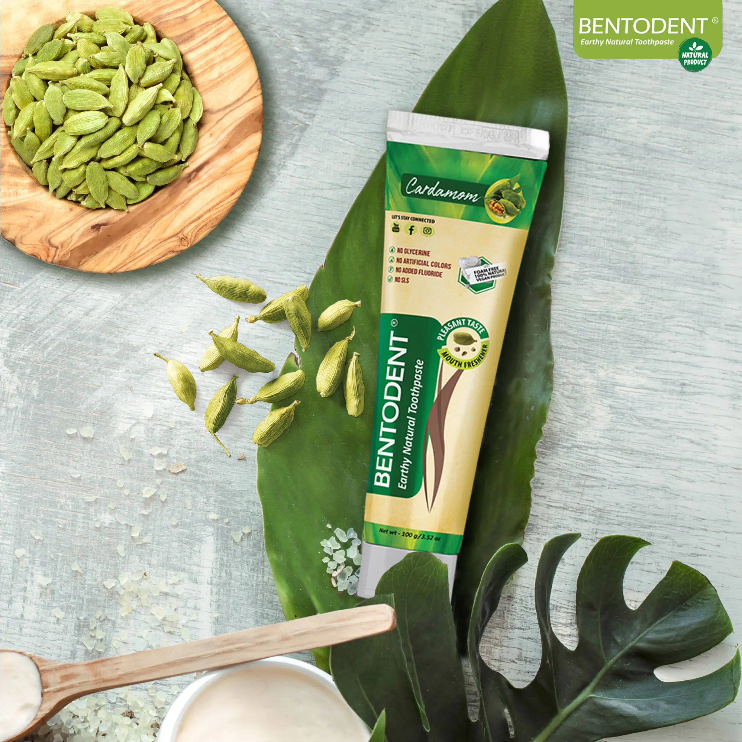 NATURAL & FLUORIDE FREE - BENTODENT TOOTHPASTE (CARDAMOM),100g